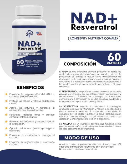 NAD+ Resveratrol Premium | Regeneración Celular + Antiedad | Protege Cerebro, Piel y Corazón